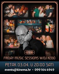 Friday Music Sessions w/DJ Keđo Kinema pub, 17/04/2026 Friday Music Sessions w/DJ Keđo Tipo di evento Concerti Località Kinema pub Data 17/04/2026 Ora 20:00 Tutte le informazioni
